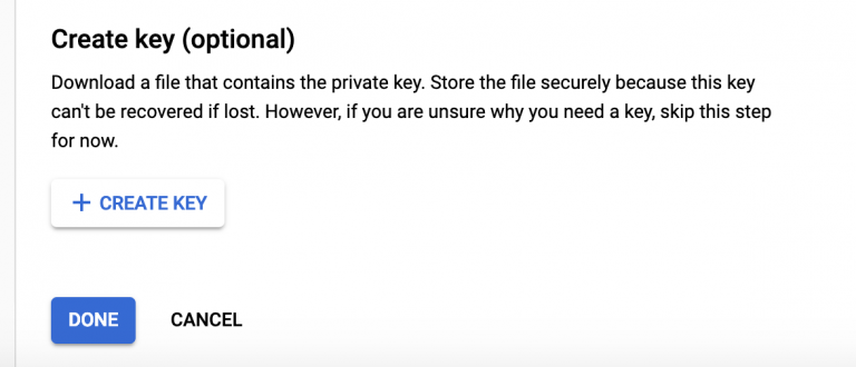 Choose one of the methods to connect your account, manual or automatic (via gcloud).