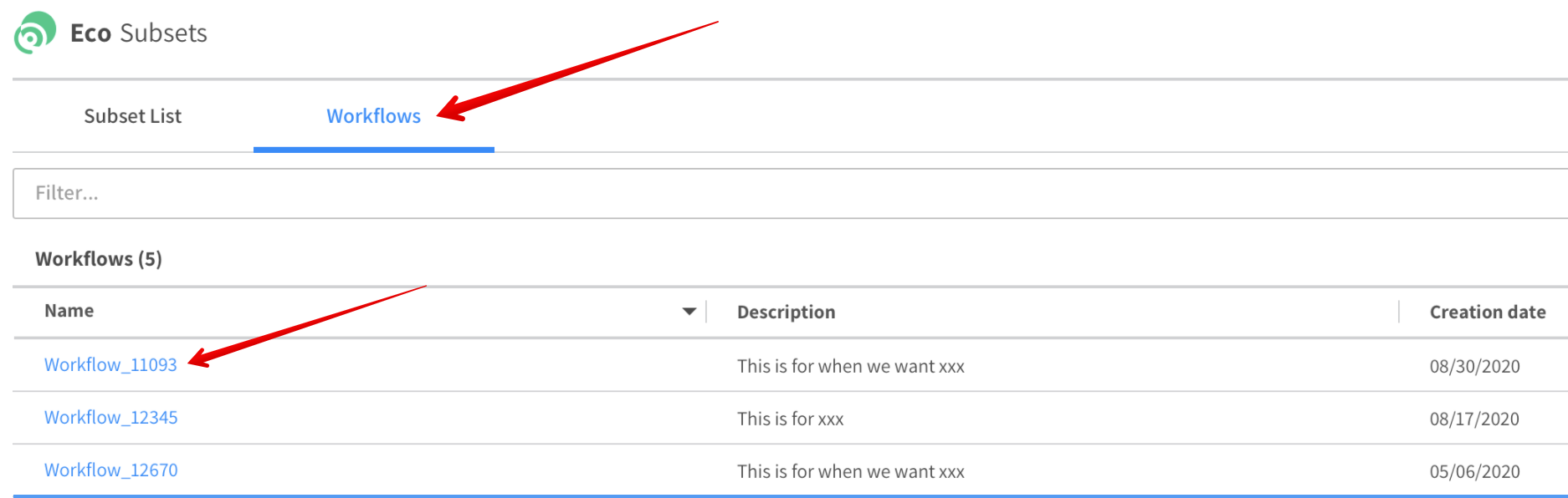 • Creation date: The date the workflow was created.