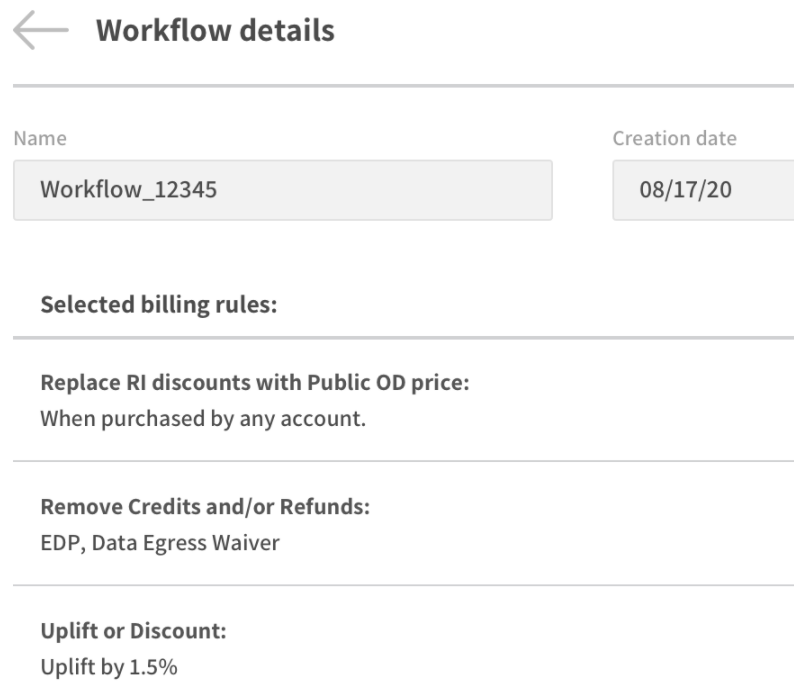 • Selected billing rules: The rules you defined in the workflow.