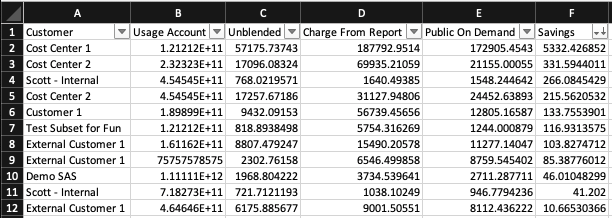 • The sum of savings associated with accounts not included in the report will appear as a row with the AccountID as 'Other'.