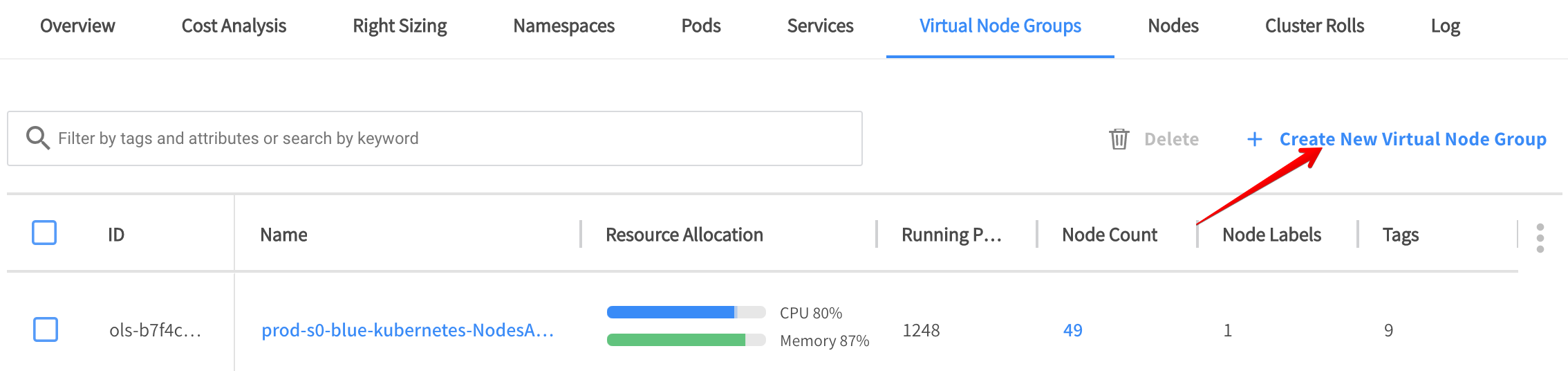 - To delete a VNG, go to the Virtual Node Groups tab.